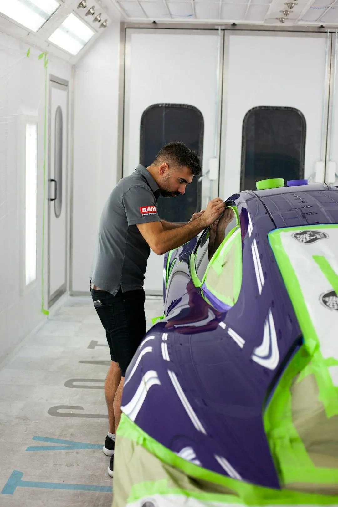 We apply paint in a controlled environment to prevent:
